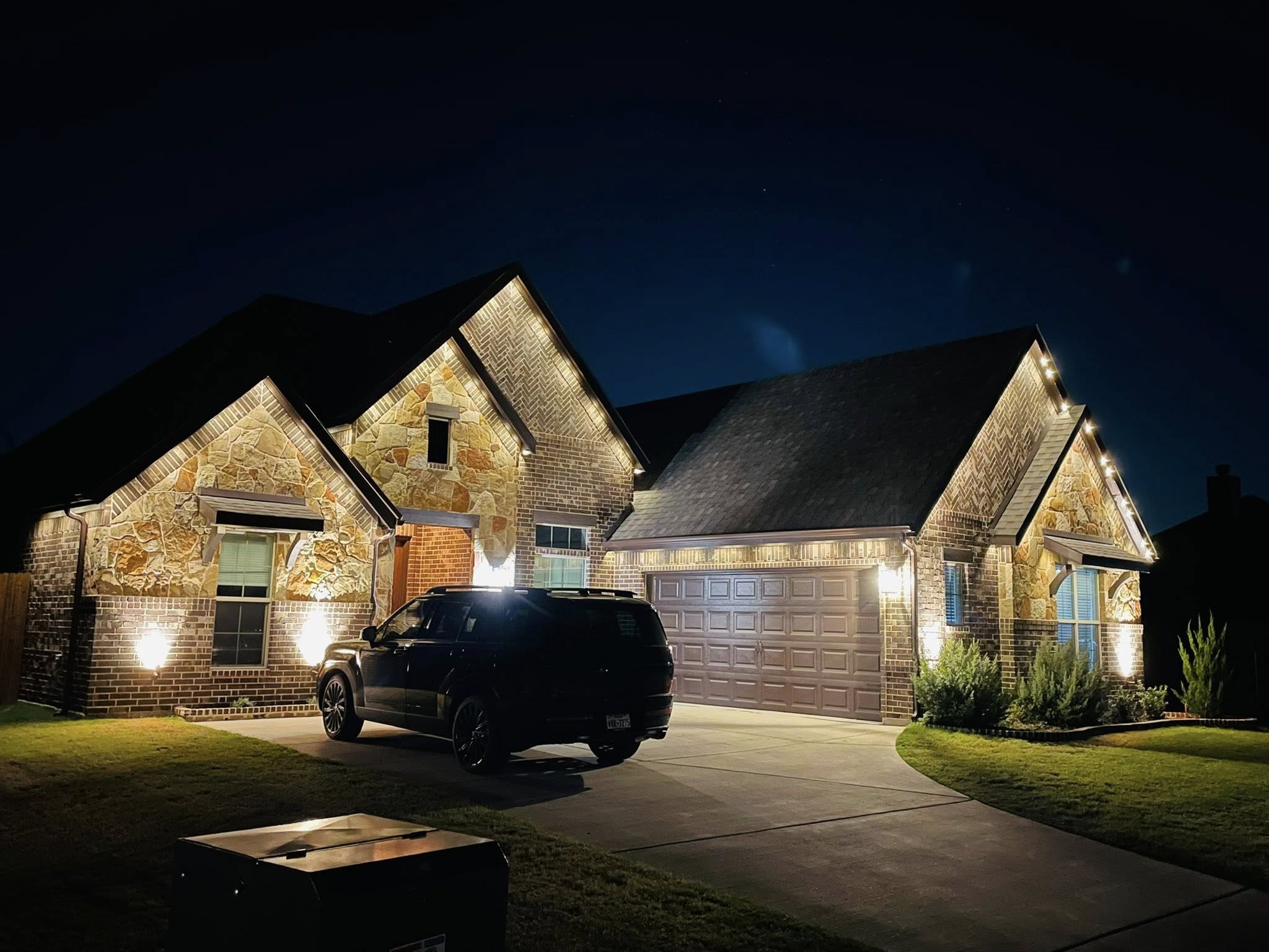 Customize your lighting to highlight specific features of your home like peaks or columns. Or get a beautiful recessed/canned lighting effect.